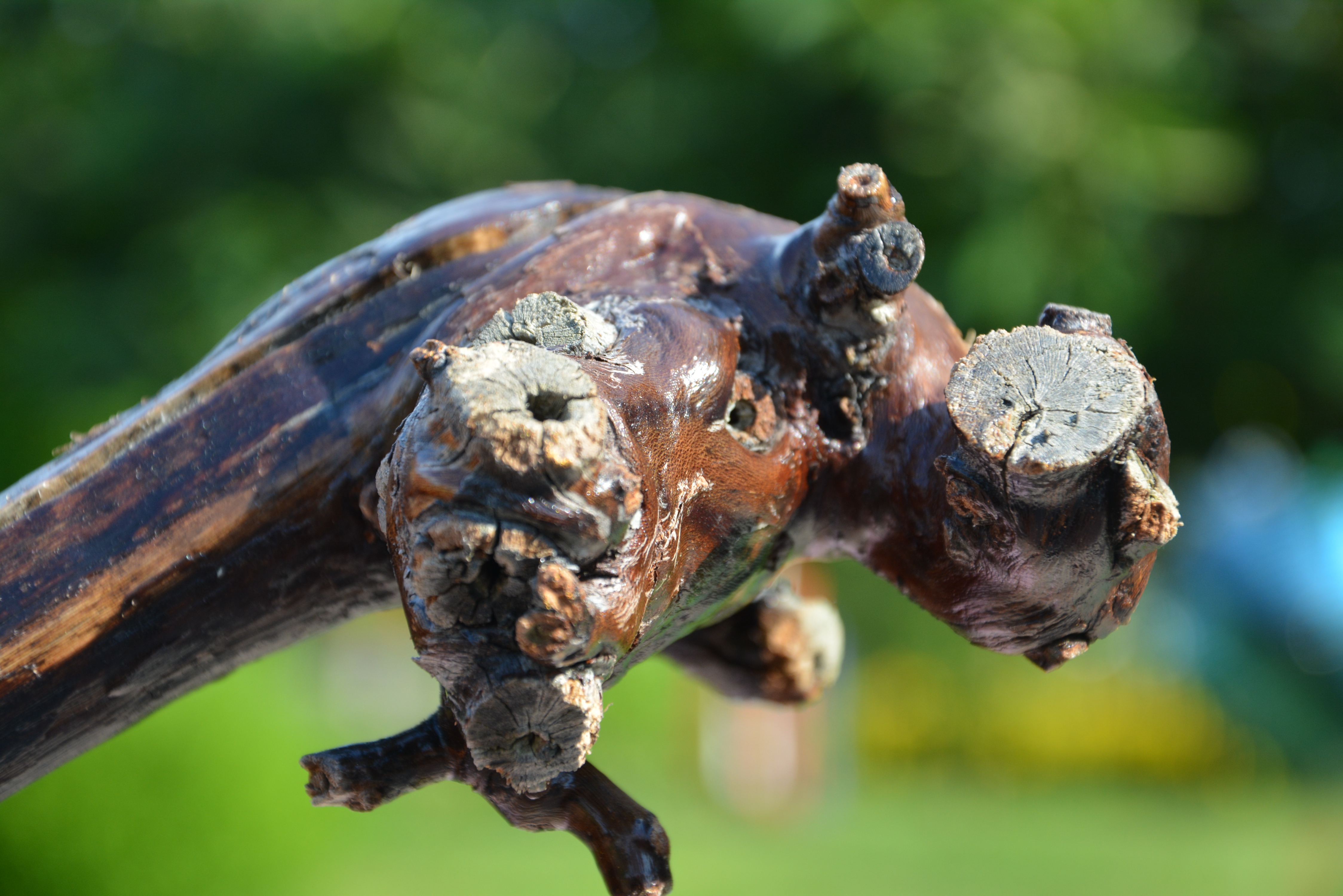 Im Zuge eines Gespräches mit einem sehr guten Freund kam auch das Thema Wein zur Sprache. Während der Unterhaltung erzählte mir Ernst, dass er in einigen Tagen beim Roden eines alten Weingartens helfen wird. Da kam mir die Idee, dass mit uralten Reben sicher irgendwas anzufangen wäre. Vom Bau eines Tischuntergestells, einer Hängelampe, einer Verzierung unserer Weinlaube, zum Entdecken von Gesichtern oder abstrahierten Tierköpfen ist mir einiges spontan eingefallen. Ich bat Ernst, mir ein paar alte Reben zurückzubehalten und bei einem unserer nächsten Treffen mir diese zu überlassen. Gesagt, getan, es waren nicht ein paar, sondern an die 40 alte Stöcke. Fein säuberlich von mir gereinigt warten sie nun auf Verarbeitung.