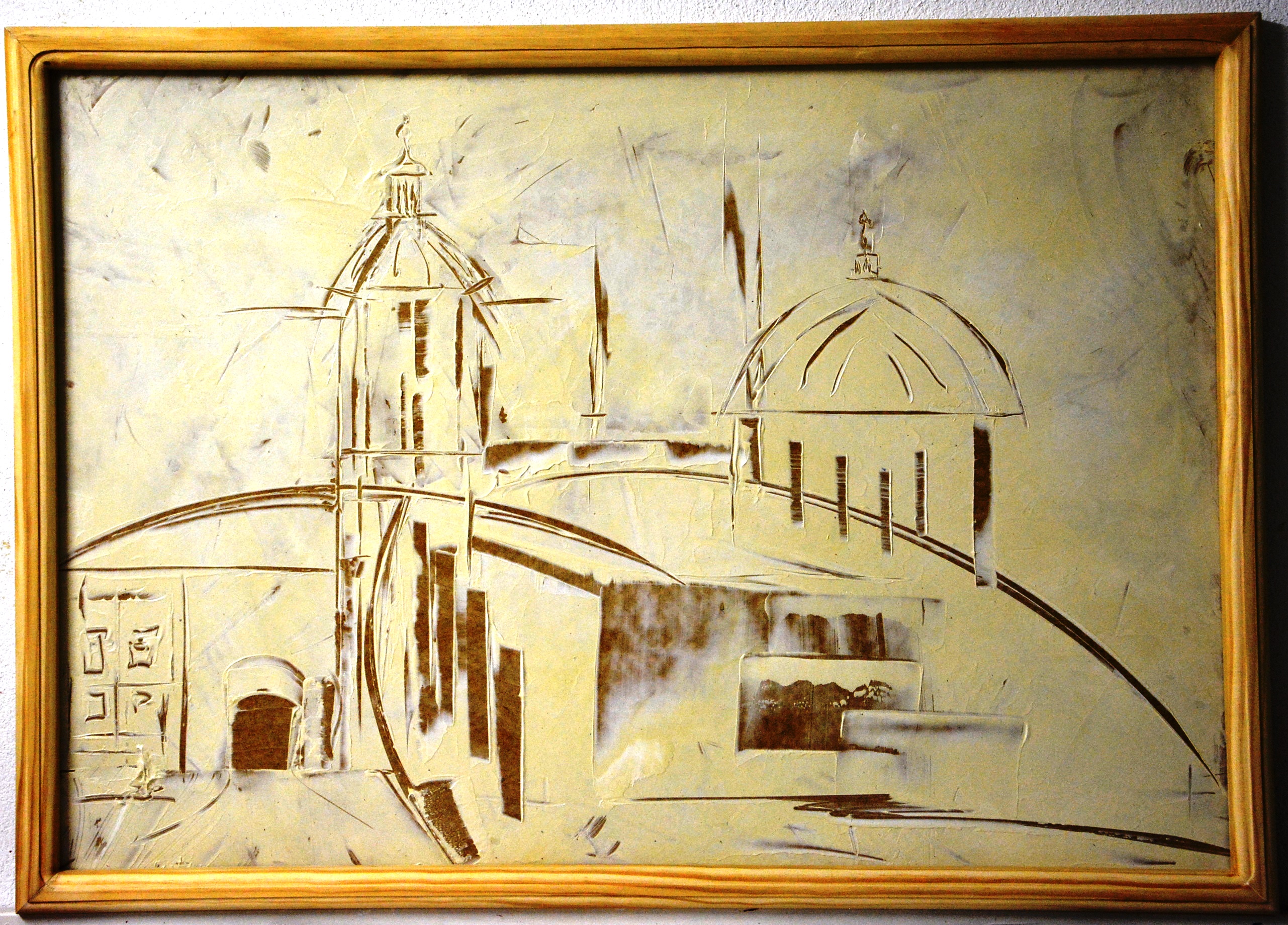 Maße: 86×62 cm, Acryl mit Strukturgel leicht, reine Spachtelarbeit auf Hartfaserplatte, Rahmen Eigenbau