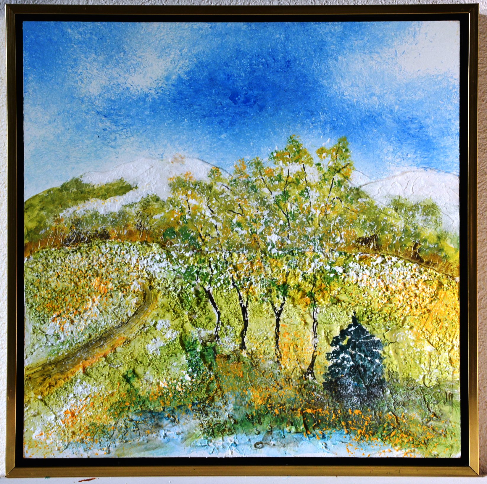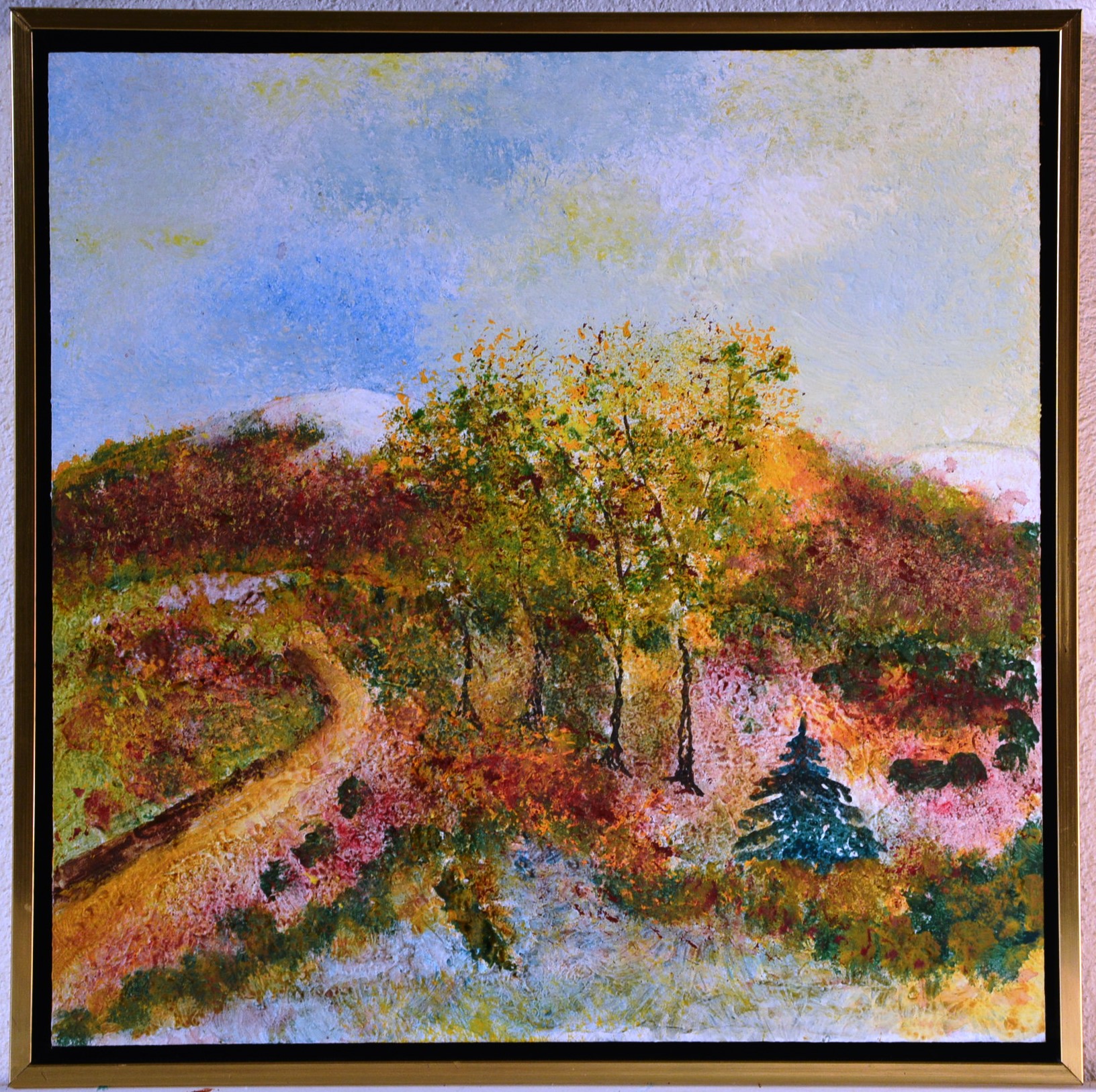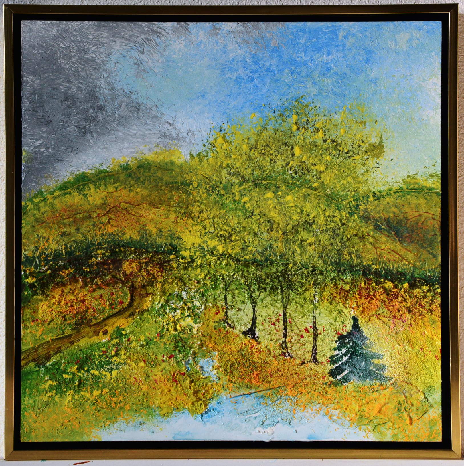 Mit dem neuen Jahr 2016 starte ich daher mit einer vierteiligen Kooperation mit meinem Bruder Klaus, der schon seit Jahrzehnten künstlerisch tätig ist. Die Bearbeitung der vier Jahreszeiten haben wir uns im Aufbau der Grundstruktur des Hintergrundes in Spachteltechnik und der jahreszeitlichen Anpassung in der Farbgebung geteilt.