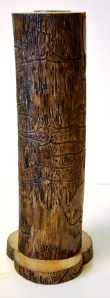 Richtig schönes Schwemmholz zu finden ist in unseren Breiten , Gott sei Dank, schwierig. Vor einigen Wochen gab es eine kleine, nicht wirklich nennenswerte Überflutung bei uns und ich machte mich erstmals auf die Suche nach angeschwemmtem Holz. Ich habe zwar keine Paradestücke gefunden, aber für den Anfang war ich sehr zufrieden. Aus dem kleinen runden Ast, der so richtig vom Wurm befallen war, habe ich eine Vase hergestellt; zwar nichts Neues, aber mich hat dieses Stück Holz fasziniert. Die Holzart konnte ich nicht bestimmen, aber es könnte eine Weide sein. Die vom Wurm hinterlassenen Botschaften konnte ich nicht entziffern, vielleicht kann jemand die Schriftzeichen deuten.