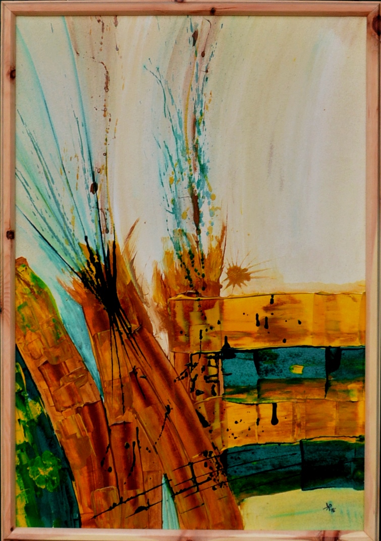 Wir sind in der Jahreszeit Herbst. Ich bin farblich einfach eingetaucht und habe meinen Gedanken in abstrakter Art und Weise einfach freien Lauf gelassen.