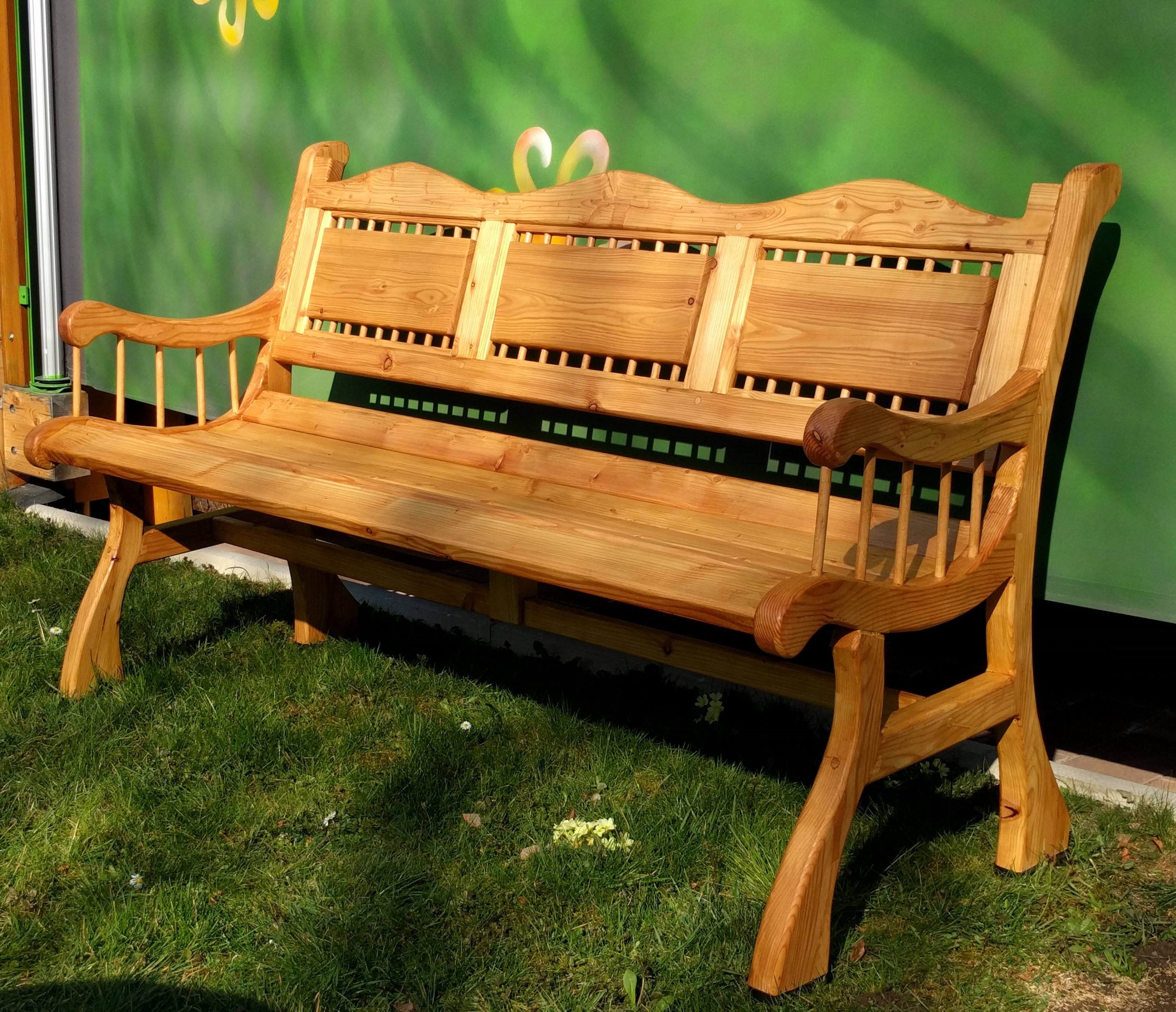 Maße: Ca 151 cm breit Lehnenhöhe ca. 85cm, Sitzhöhe ca 45cm, alles Lärche