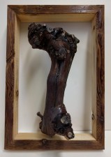 Uralte Chardonnay-Rebe, in einen aus altem Dachstuhlholz gefertigten Rahmen, gesetzt. Die Rebe lässt sehr viel Interpretationsraum.