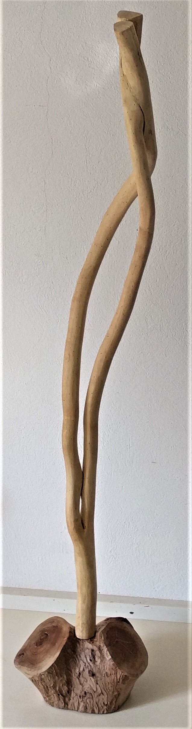 Im oberen Teil ist dieses Gewächs schon dünner geworden, hatte den Baum aber fest im Griff. Aus diesem Teil entstand dann diese Kreation: „SCHLANK und VERSCHLUNGEN“.