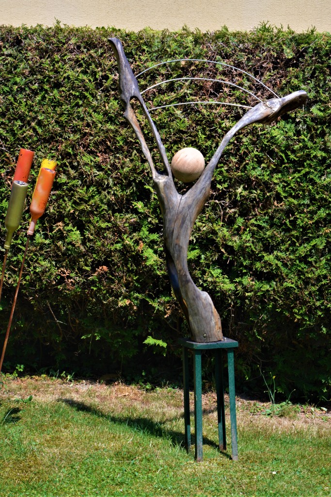 Durch nun mehrjährige Witterungseinflüsse hat „ER“ doch so manch harte Tage durchmachen müssen. Jetzt habe ich den Apfelbaum einer letzten Umgestaltung unterzogen, weil ich noch nicht bereit war, die Skulptur dem Feuer zu übergeben.