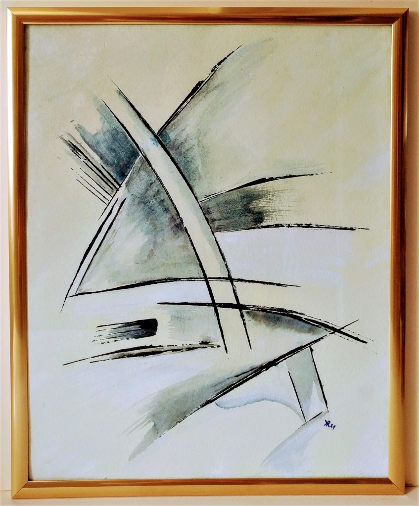 Seit langer Zeit habe ich wieder einmal zum Pinsel gegriffen, weil mir diese Abstraktion auf einer „Deko-Fliese“ in einem Lokal aufgefallen ist und ich mir dachte, dass dies auf einem größeren Format auf Büttenpapier vielleicht gar nicht schlecht aussehen könnte. Gedacht, getan.