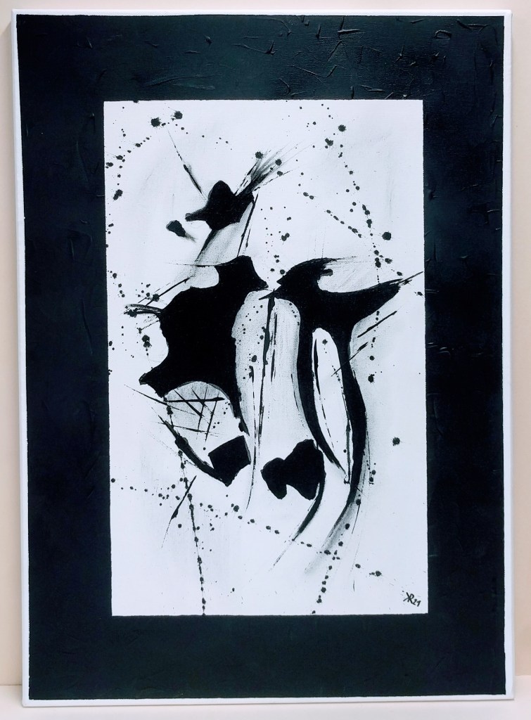 Maße: 50 x 70 cm, Keilrahmen, Acryl, Tusche und Kohlestift