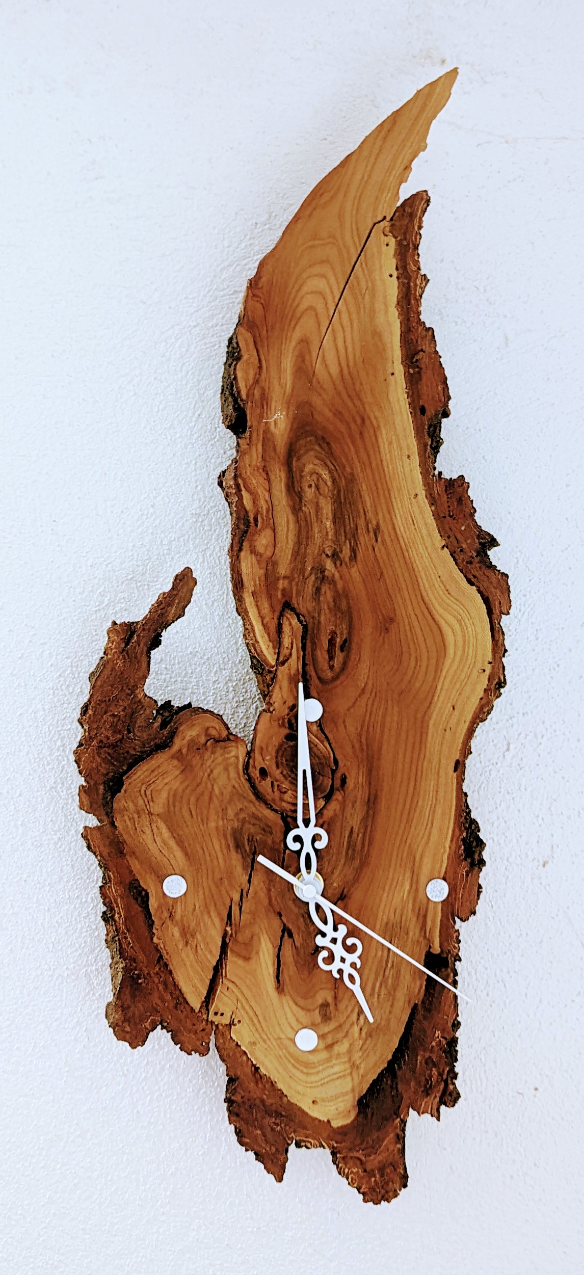 Eine Anfrage ob ich schon einmal Kreuze hergestellt hätte musste ich verneinen. Also machte ich mich an die Arbeit, besorgte mir das passende Material und ein Metallkreuz aus NIRO. So entstanden diese drei Objekte, zu guter Letzt fertigte ich noch eine Uhr auf einem Marillenbrett an, um das heurige Jahr , so scheint es zumindest, abzuschließen.