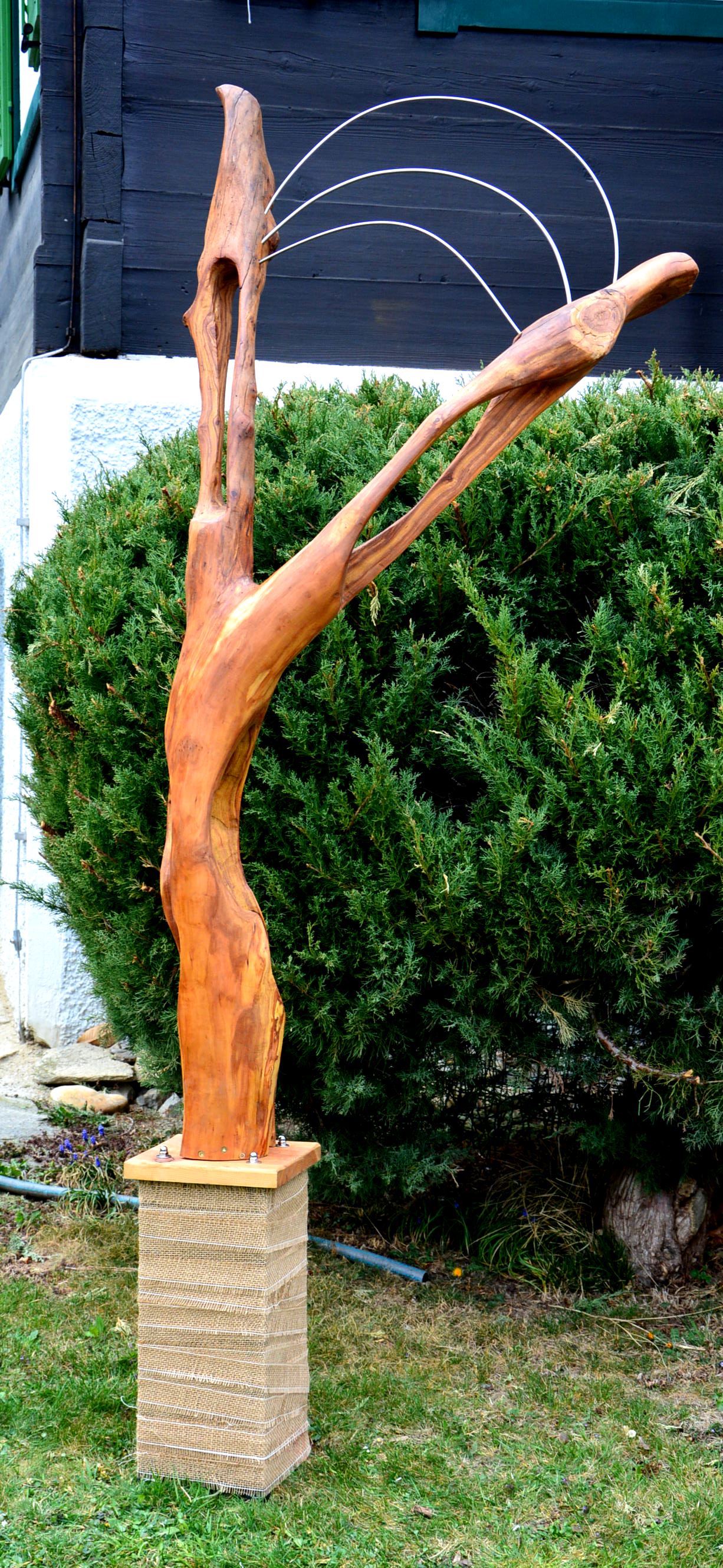 wirklich cool! hast du aber auch schon mal an plexiglas und beton bezüglich des Sockels gedacht. ich könnte mir vorstellen, dass das sehr gut passt und dem holz der Skulptur die volle Aufmerksamkeit sichert.